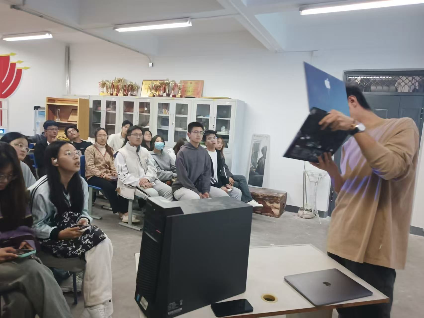 刘景天首先概述了计算机硬件的基本定义、组成、发展历程及广泛应用,随后详细讲解了运算器的定义、功能、组成及工作原理,并通过图片和现场演示生动地展示了运算器在计算机系统中的关键作用。接着,他围绕存储器这一核心部件介绍了只读存储器(ROM)和随机存储器(RAM)的特点、功能、类型及比较,深入剖析了缓存和辅助存储器的定义、功能、类型及特点,使同学们对计算机的存储器有了更为全面的认识。在讲解过程中,刘景天特别强调了存储器与控制器在计算机系统中不可替代的地位,指出它们的读写能力和信息保存功能对于计算机的正常运行至关重要。他鼓励同学们不仅要了解计算机硬件的构成与原理,更要通过实践来提升自己的动手能力。课堂引发了同学们的热烈讨论,大家纷纷表示,接下来将组建学习小组,共同探索计算机硬件技术,拓展学习知识的广度和深度。